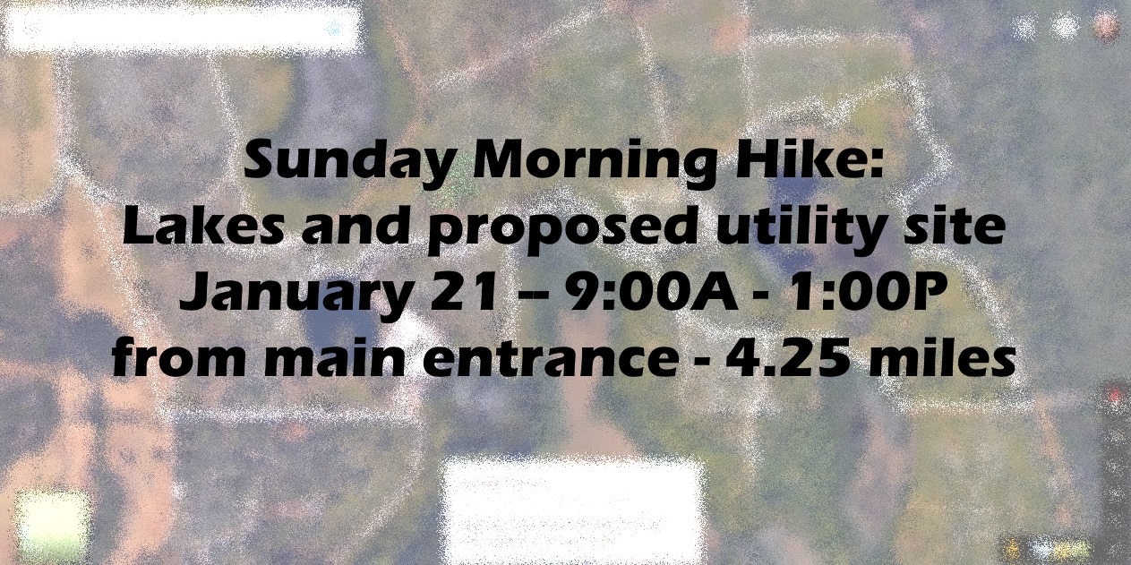 4.5 mile hike: From the Main Entrance to Lake Two, take the trail North of canal to the perimeter of Lake Three, then follow the eastern border to the Utility Site. Return on the trail South of the canal to the fire break, then to the Lake Two spoil pile. Then take County Line Trail to the western meadow and back to the parking lot.