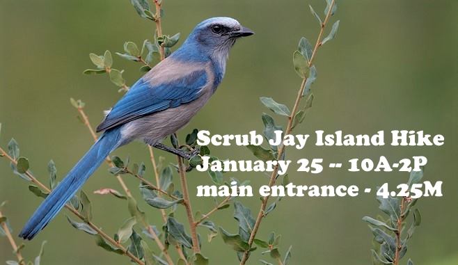 From main entrance south meadow to county line trail, south to n/s trail, Scrub Jay Island, west to western border, north along meadow - 4.25 miles